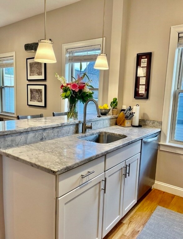 ****** Available 8/1 ********** .Renovated 2 bed / 2 bath condo ideally located on the corner of E & Tudor Streets and just steps to the many trendy shops / restaurants on W. Broadway and the upcoming Washington Village project. This raised first floor home offers an efficient layout and open floor plan with a spacious living / kitchen area. The kitchen features stainless steel appliances, white cabinetry, Super White granite countertops and bar seating for 3 with an adjacent pantry closet. The corner exposure with ample windows allows for an abundance of natural light throughout. The spacious primary bedroom features 2 closets and an ensuite bathroom with a double sink vanity and marble shower. Both bedrooms can accommodate a queen or king size bed. Additional unit features include a brand new in-unit washer dryer, central air, hardwood floors, excellent closet space and an oversized deeded storage area in the basement. A short walk to the #9 Copley Bus, train and Lawn on D / Seaport District.