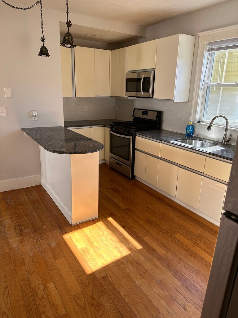 Bright and spacious 3-bedroom, 1 bath apartment in Dorchester. Features: hardwood floors, an updated kitchen with modern appliances, laundry, a private balcony (front and back), a backyard, and easy access to public transit, local shops, and restaurants.