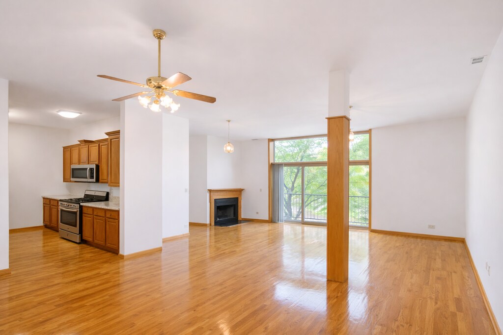 Welcome to this spacious three-bedroom, two-bathroom apartment in the highly sought-after Logan Square/Bucktown neighborhood. Featuring hardwood floors throughout, the home offers a warm and inviting feel, complemented by private metal balconies for outdoor enjoyment. A cozy fireplace adds charm, while the in-unit washer and dryer provide everyday convenience. The updated kitchen includes modern appliances and a dishwasher, ideal for cooking and entertaining. Both bathrooms have been tastefully renovated with contemporary finishes. Generously sized bedrooms offer comfort and flexibility. Central heat and air conditioning ensure year-round comfort. Garage parking available for $125. $250 move fee. Cats welcome, no dogs. Miguel Tineo Real Estate Broker Fulton Grace