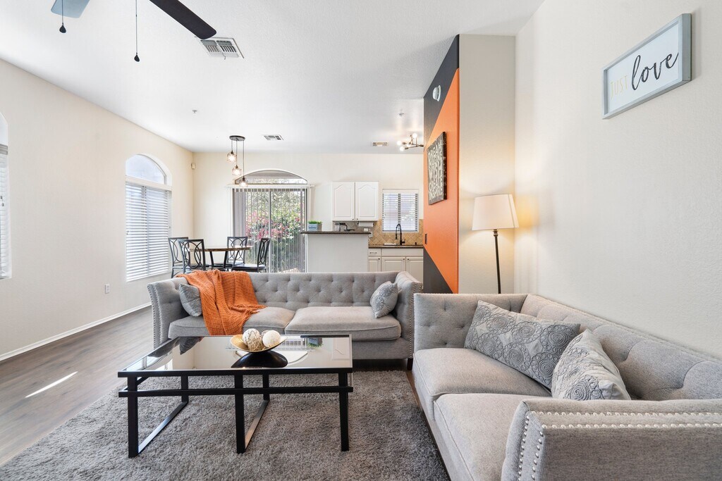 Una casa adosada de dos dormitorios y dos baños y medio completamente amueblada y recientemente renovada en una ubicación privilegiada en Tempe. Nuestra casa adosada también incluye un garaje, estacionamiento con permiso y estacionamiento para huéspedes si tiene más de un automóvil. Ubicado frente a las nuevas instalaciones de entrenamiento de primavera de los Chicago Cubs, frente a Tempe Marketplace, que cuenta con una gran cantidad de restaurantes, tiendas y entretenimiento. Nos encontramos a 10 minutos del Aeropuerto de Phoenix y a 15 minutos del casco antiguo de Scottsdale. Los servicios incluyen 2 piscinas comunitarias y BBQ Grill. - Lavadora y secadora incluidas - Opción totalmente equipada: Abierto para alquileres a corto plazo y mascotas con un cargo adicional.