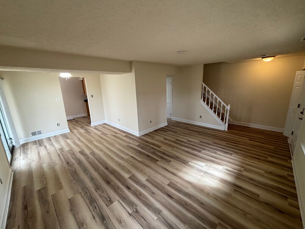3 Bedroom, 1.5 Bath End Unit Townhome at Green Meadows (1,320 sqft). Welcome to this end unit nestled beside a wooded area, offering modern conveniences, comfort, privacy, and a functional layout. Step into a living room with sliding doors that lead to a patio, and enjoy the eat in kitchen which provides plenty of space for meal prep and dining. Upstairs, the primary bedroom has direct access to the full bath. Two additional bedrooms access the full bath from the hallway, making the floor plan practical & comfortable. Enjoy everyday convenience with an in unit washer/dryer, outside storage, and off street parking for one vehicle (additional parking in overflow). Have year round comfort with central air and a heat pump, and stay organized with custom closet organizers throughout. Located close to numerous local amenities including restaurants, grocery stores, USPS, the library, and a playground within walking distance. Contact us today for more information or to schedule a tour!