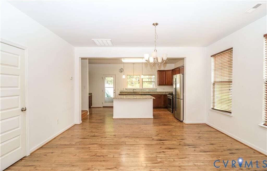 Welcome Home to this great end unit town home in the Townes at Woodman with private rear yard. First floor features open floor plan with 9' ceilings and engineered hardwood throughout the living room,dining area,kitchen,and half bath. Spacious kitchen offers large island with bar top,granite counters,gas cooking,newer stainless steel appliance,and desk area. Second floor features spacious primary bedroom with walk in closet and window seats,primary bath w/double vanity and tiled shower with bench seat,second bedroom with full private bath and hallway laundry closet with washer & dryer. Third floor features third bedroom with full private bath. Rear private yard features patio,shed,table with chairs,and play equipment. Maintenance free - lawn care,trash service,and snow removal. Pets conditional with non refundable pet fee of $300 and pet rent of $25/pet/month. Great Location! Easy access to I-295,I-64,I-95,& I-288,Innsbrook,Short Pump or Virginia Center Commons Area,etc. only minutes away. All this for $2500