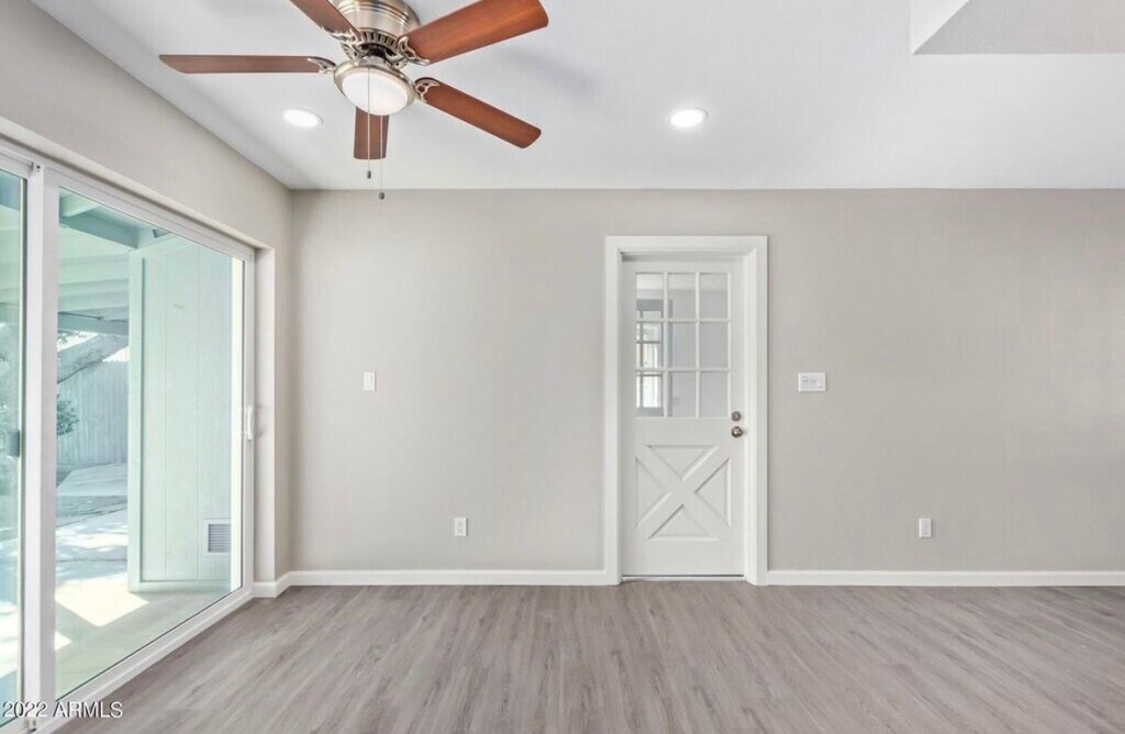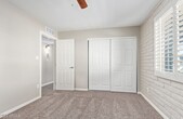 Single family home for rent/ 2 bedroom/ 1 bathroom/ 1 car garage(with garage door opener)/ 2 car covered parking behind rv gate/ 3 car parking on drive way/ children and dogs will love this location due to 3 to 4 mile long park, 100 steps from the front door. Park has basket ball, playground, baseball, raquet ball, pickle ball, soccer fields and more. Step into the serene ambiance of your place to call home. Neutral soft colors to compliment any decor. Fresh interior paint that compliments the new plank flooring and new plush carpet in the bedrooms. Even the baseboards are new. Bedroom retreats offer soothing colors and plantation shutters. Kitchen has been remodeled with new white shaker cabinets, quartz countertops, new faucets, hardware, and CAM lighting. Stainless steel stove and built-in microwave. Bathrooms have been remodeled with new tub, vanity, faucets, light fixtures and even the toilet. New windows and slider glass. Upgraded ceiling fans and light fixtures. New interior pocket doors and closet doors. Plenty of parking space. 1 car garage. Covered extended parking to the rear of the home. New Roof, AC and appliances 100 steps from one biggest green belts filled with trails, basketball courts and much more. Background check required and min credit score of 680 to rent this house.