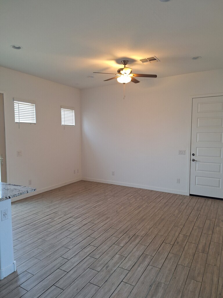 Casita in Asante neighborhood with private front entrance. All utilities included (gas, electricity, water, sewer, trash and recyclables pick-up, heat, AC, hot water, 1 Gig fiber optic internet, panoramic wifi - no dead area of the house, secure ethernet connection. Ring camera. Tenant pays only for personal phone services. Fully equipped kitchen with stainless steel appliances, french door counter depth refrigerator and granite countertop. Undermount stainless steel sink. 10 ft ceilings throughout. Ceramic plank floor throughout, no carpeting. Bathroom vanity and granite top match kitchen cabinets and countertop. Walk in closet in bedroom, with barn style door and full size stackable washer and dryer. Side door leads to private patio with pavers. One car garage and entry service garage door to unit. Gas, electric, water, sewer, AC, heating, hot water, trash/recyclable pick up and 1 Gig internet wifi are all included. 2 inch cordless blinds installed on windows. On cul-de-sac. Easy access to loop 303. Fry's and other businesses like fast food, personal grooming services, etc., all within walking distance. House was built in 2021. Please text or email Walter.