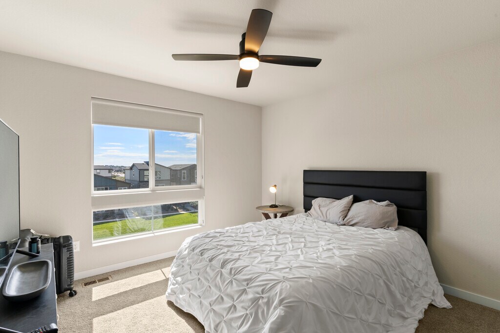 Classic Homes Midtown Collection. Single family home built in 2021 with 2 bedrooms, each with en-suite bathrooms, plus flex room (perfect for office, den or playroom). Custom built shelving in master bedroom closet, laundry area, garage, and flex room provides increased storage space. No yard maintenance. Built in sprinkler system for plants. Neighborhood playground within walking distance. Close to Peterson SFB, Schriever SFB, and Fort Carson. Conveniently located near grocery, shopping, and entertainment venues. 15-20 minute drive to downtown Colorado Springs. Monthly rent covers garbage service. Renter(s) pays all other utilities. - Rent covers trash pickup - Renter(s) pay all other utilities (wifi, electric, gas, water, etc.) - No maintenance yard - House is UNFURNISHED - Lease is 1-year minimum ($2,400 security deposit due at signing) - 2-car garage parking
