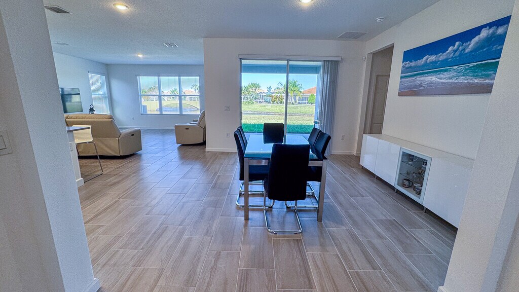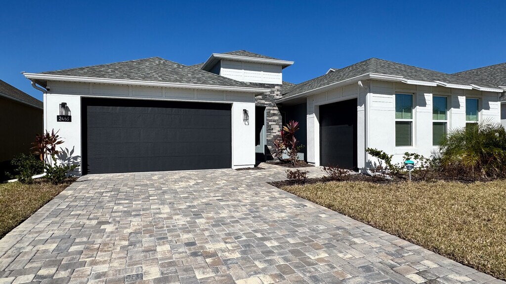 A beautiful and spacious one-story home (built: December of 2023) in a gated community. This property features 4 bedrooms, a large office, 3.5 bathrooms, tall ceilings, and a large open kitchen with a huge pantry and an island with a large sink. The living room offers abundant natural light with numerous windows overlooking a gorgeous view. Beautiful tile flooring runs throughout the entire home, including all three garage spaces. The house features stunning brand-new built-in cabinets and closets throughout, providing an abundance of storage. This home includes a separate area with a versatile open room that can serve as a living room, media room, or playroom, with access to two private bedrooms and a bathroom. This smart home features a whole-house water filtration system and an energy-efficient water heater. The community pool is within walking distance. Location, location, location! Conveniently located near I-95, yet still very quiet and surrounded by beautiful nature. The home is next to a brand-new plaza featuring fully operational grocery stores, restaurants, a gas station, and much more. It is also close to wonderful hiking and biking trails and only a 12-minute drive to the beautiful Indian River, which offers a boat ramp for boating, jet skiing, kayaking, paddleboarding, and other water activities. Enjoy countless options for stunning Space Coast beaches. The home is just 20 minutes from downtown Melbourne, 30-40 minutes from the famous Sebastian and Vero Beach State Parks, one hour from Orlando, and 1.5 hours from South Florida. Port Canaveral and Cocoa Beach are only 50 minutes away. Rocket launches can be viewed directly from the master bedroom, living room windows, or backyard! The property will be rented unfurnished, allowing you to furnish and style it to your taste. Lease term: 12 months. Pets require an additional security deposit. Smoking is not allowed inside the house.