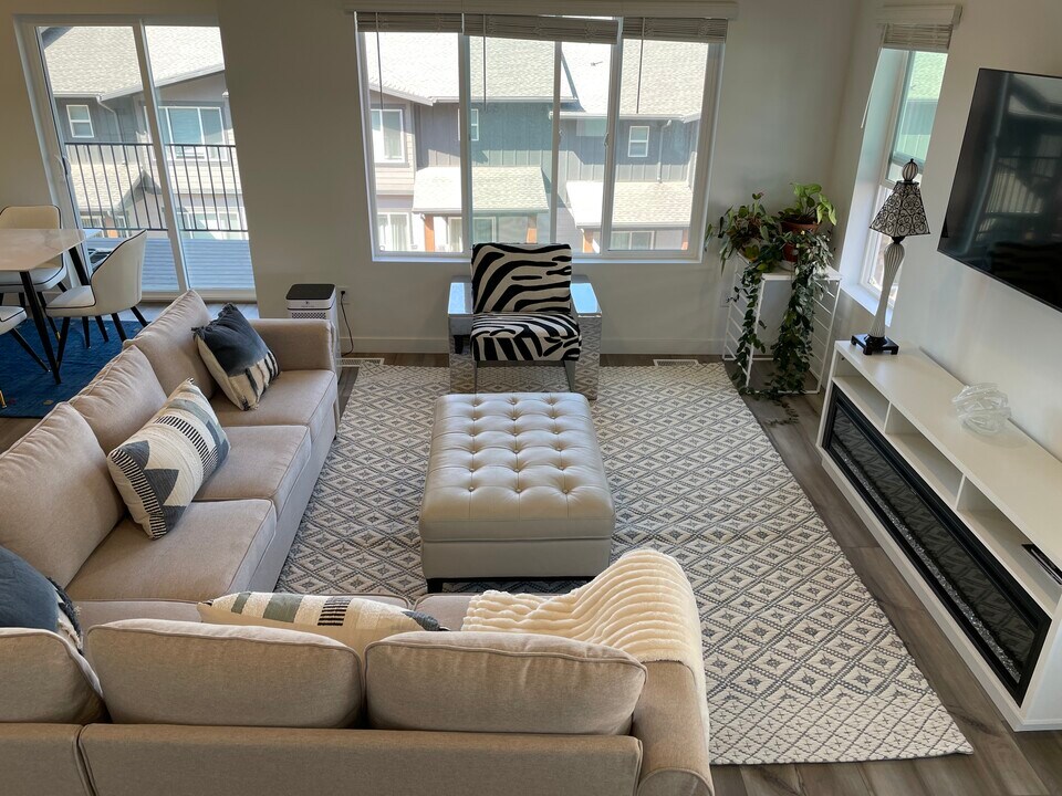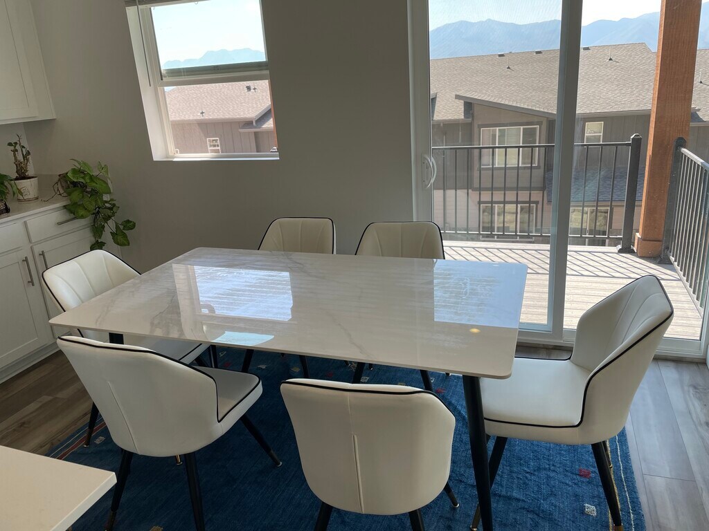 Beautifully furnished new luxury townhouse , end unit ,sleeps 6, five minutes from East Deer Walley Village and Gondola ( skiing, hiking, biking) and boating and paddle boarding at Jordanelle lake. Master bedroom suite with king bed for 1 or 2 persons 1500.00.Additional bedrooms with queen size bed 1000.00 for 1 person, additional 200.00 for second.Shared kitchen and living space.Will have to pay for electricity and gas,all other utilities included. Fully furnished with high end stylish furniture, furnishings and art, comfortable 3 beds and pull out sofa bed ,high end mattresses, organic cotton sheets. .Smart HDTVs with fast internet for your remote work.Perfect peaceful home .High 95 % efficiency furnace and tankless water heater.Reverse osmosis/UV water filtration. Up on a hillside with majestic view of Timpanogos mountains from large balcony. and rooms. You feel on vacation Bright and airy, lots of windows bring nature in.Specious gourmet kitchen with quartz countertops and stainless steel appliances. Electric fireplace .LVP floors in living area and kitchen.. Plenty of closet space and walk in closet in bedroom suite. Two car attached garage and extra parking spaces. Unfinished walk out basement can be used for storage.Close to shopping, art and fine dinning in Heber City and skiing and golfing in Park City Mountain Resort,Canyons and Sundance resort.