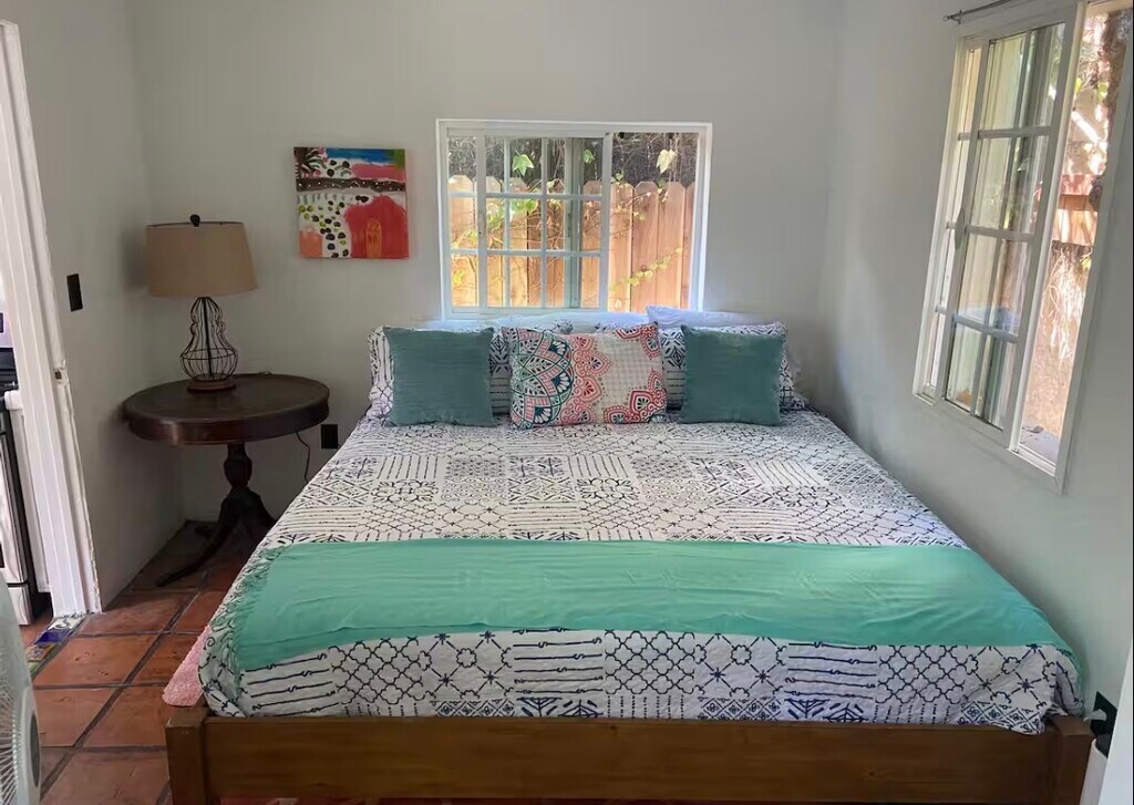 Nestled in the cozy town of Summerland, this charming cottage named the Sugar Shack offers a peaceful and comfortable living space. It is one story cottage, equipped with a full kitchen, bathroom, and designated bedroom that offers privacy. A kitchen window provides a parcial ocean view. Location is ideal for all visitors, as Santa Barbara is a short drive of about 10 minutes and the beach is a mere 10 minute walk. Fully furnished and equipped with a Smart TV and gas BBQ. The cottage can sleep in three comfortably with a king bed in the bedroom and a two twin day bed(trundle) in the living room. The full bathroom is accessible from the king bedroom and the living room. And the full sized kitchen has an ocean view. Everything in the pictures displays the entire space you get with the cottage. Come relax in the peaceful setting under the palms. The entire space is yours.