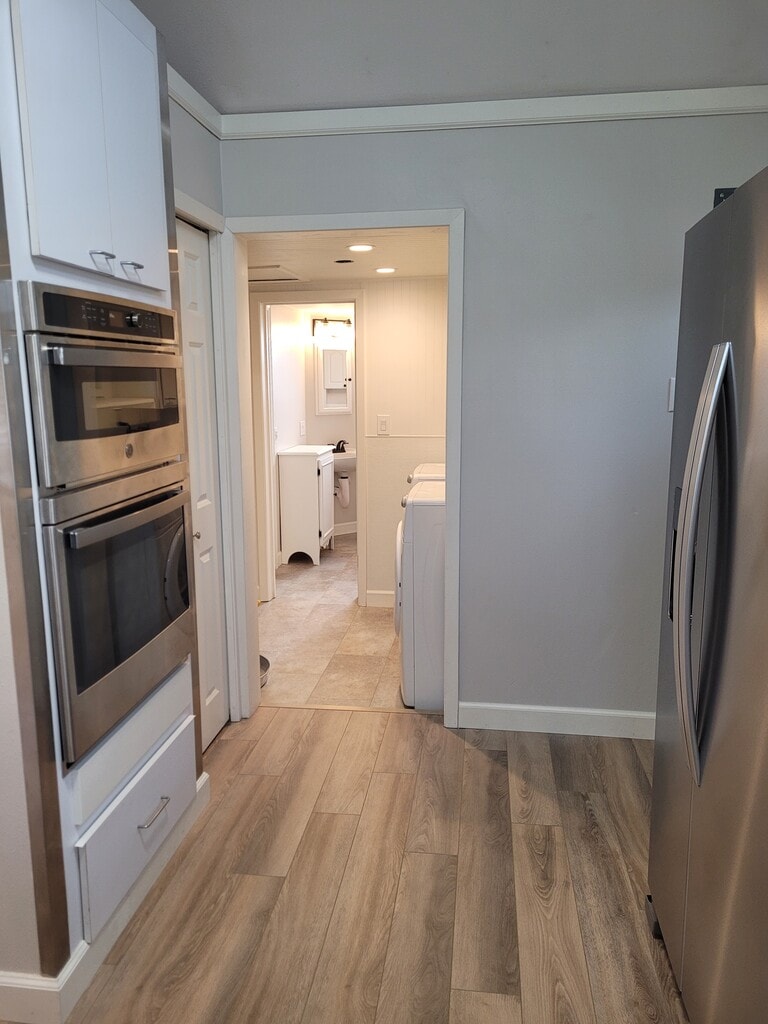 Encantadora cabaña de dos camas y un baño: ¡esta encantadora cabaña de dos dormitorios y un baño está limpia y lista! Patio trasero vallado con espacio de almacenamiento de 10x14 y cubierta trasera cubierta. En la planta superior hay una habitación adicional. El hogar tiene calefacción por gas, tanque de agua caliente y estufa de gas. Horno y microondas integrados. Lavadora y secadora en casa. Estacionamiento adicional para vehículos recreativos o vehículos.
