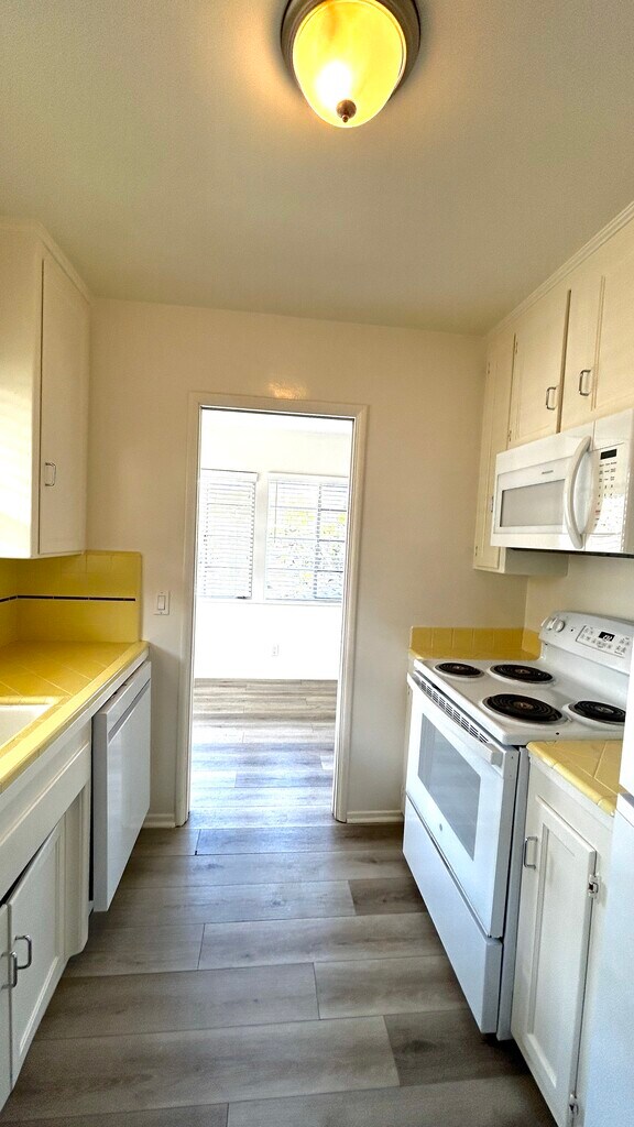 Charming New Brentwood Glen Listing! This hidden little pocket of Brentwood is great for those who want the quiet neighborhood vibe of Brentwood without the congestion and noise! This 2nd floor 1 bedroom + 1 bathroom gets flooded with natural light and comes equipped with brand new carpet, vinyl plank flooring in dining/kitchen, fresh paint, two A/C units, In-Unit washer and dryer, dishwasher, microwave and cool retro color tile in the kitchen and bathroom! This unit also comes with 1 parking space in an enclosed shared garage as well as some storage shelves in front of the parking. This unit does have French doors as a rear entrance to the unit from the garage and is located in a very well maintained Fourplex. Very close to fwys, hiking, shopping on Barrington Ave., Westwood Village and just a few miles from the beach. Apply now! Rent and Security Deposit are each $2,695
