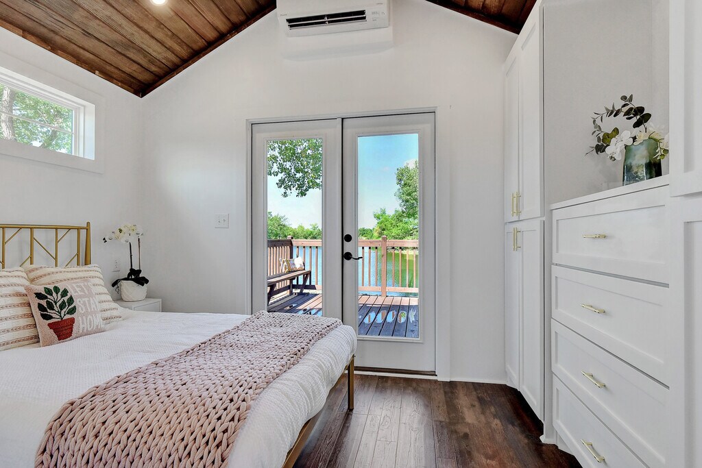 Lakefront Designer Cabin in a secure gated community. Welcome to your perfect retreat - a beautifully crafted designer cabin nestled on the tranquil shores a private lake. This small yet stunning cabin offers a peaceful escape for singles, couples, creatives, and nature lovers alike. Step inside and discover a thoughtfully designed open concept space featuring custom woodwork, built ins, designer kitchen and bath, front and back decks, and floor-ceiling windows that frame breathtaking lake views. Outdoors, relax on the private deck just steps away from the water, enjoy morning coffee with the sunrise and kayak or paddle-board on the private lake. Visit with your neighbors at the fire-pit under the canopy of stars. Or walk on the hiking trails with beautiful views and wildflowers. This is to your perfect retreat opportunity to embrace a low-maintenance lifestyle surrounded by peace, privacy and welcoming neighbors. The community is a hidden gem: wooded acres, wildflower meadows, with just 11 home-sites, and friendly, welcoming neighbors. Enjoy the fully stocked lake--ideal for fishing and kayaking. Amenities include: three docks, a community chicken coop and garden, fire pits, walking trails and community gathering areas fostering connection with nature and neighbors. Perfect for those seeking sustainable, maintenance free lifestyle. This community is just 10 minutes from the Hunt County Seat of Greenville offering the best of both worlds: tranquil seclusion with modern conveniences nearby. With just 11 homes, and only 2 available for rent or sale, opportunities to live in this special community won't last long.
