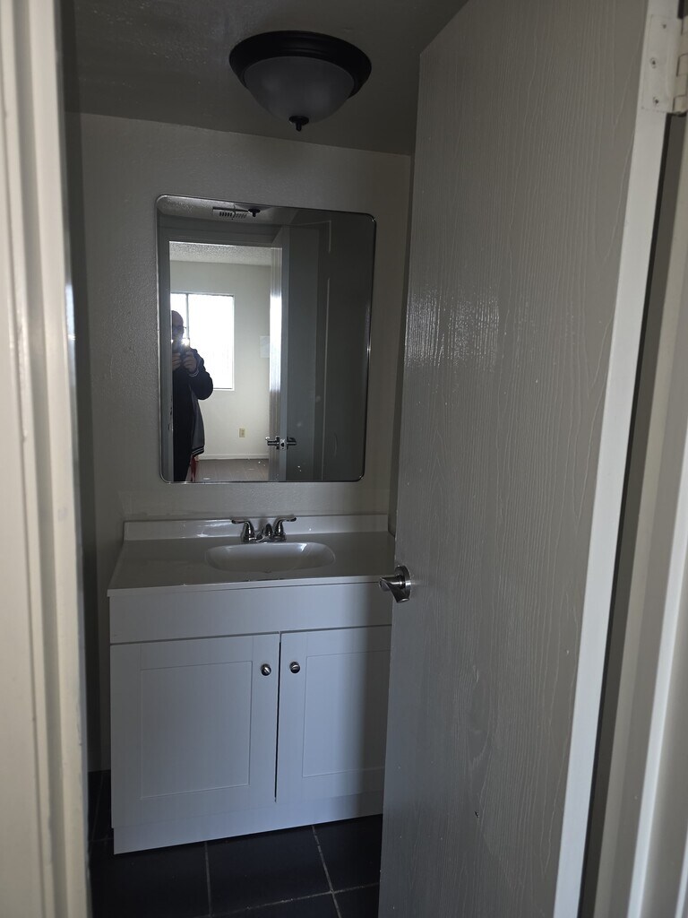 2 bed 2 bath apartment freshly painted and bathroom remodeled .near the strip and close to shopping center .2 car parking space or more . Storage room in the back