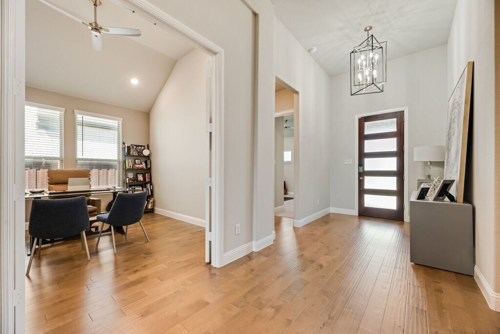 Welcome to this beautifully upgraded single-story home in Hollyhock, one of Frisco’s most sought-after master-planned communities. Built in 2021 and meticulously maintained, this 4-bedroom + private office, 3-bath home offers 2,681 sq ft of open, functional living space designed for comfort and style. Step inside to find hardwood floors throughout (carpet only in 3 of the bedrooms), high ceilings, and abundant natural light. The open-concept kitchen and living area make this home perfect for both everyday living and entertaining. The dedicated office provides an ideal work-from-home setup, while the single-story layout offers convenience and privacy rarely found in rental homes. Located in top-rated Frisco Independent School District and zoned to: • Minett Elementary School • Wilkinson Middle School • Panther Creek High School Enjoy all the amenities Hollyhock has to offer, including parks, trails, and a vibrant community atmosphere. ? Home Features • 4 Bedrooms + Private Office • 3 Full Bathrooms • Luxury Laundry Room • Built in 2021 • Single-Story Layout (rare!) • Hardwood Floors Throughout (carpet only in 3 of the bedrooms) • Open Concept Living & Kitchen • 3-Car Garage • Excellent Condition