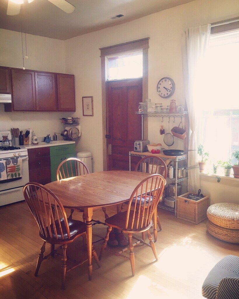 Ukrainian Village 1BR con planta abierta en el segundo piso de un bonito piso de 6 pisos. Edificio antiguo, pisos de madera con estufa blanca y refrigerador. Combinación de cocina abierta/sala de estar, además de un BR y otra oficina/sala de repuestos. Tiene aire acondicionado central, lavandería en el sótano y un patio compartido. A una cuadra de Chicago Ave. Prefiere no fumar ni mascotas, puede considerar un gato. Llame o envíe un mensaje de texto para programar una visualización.
