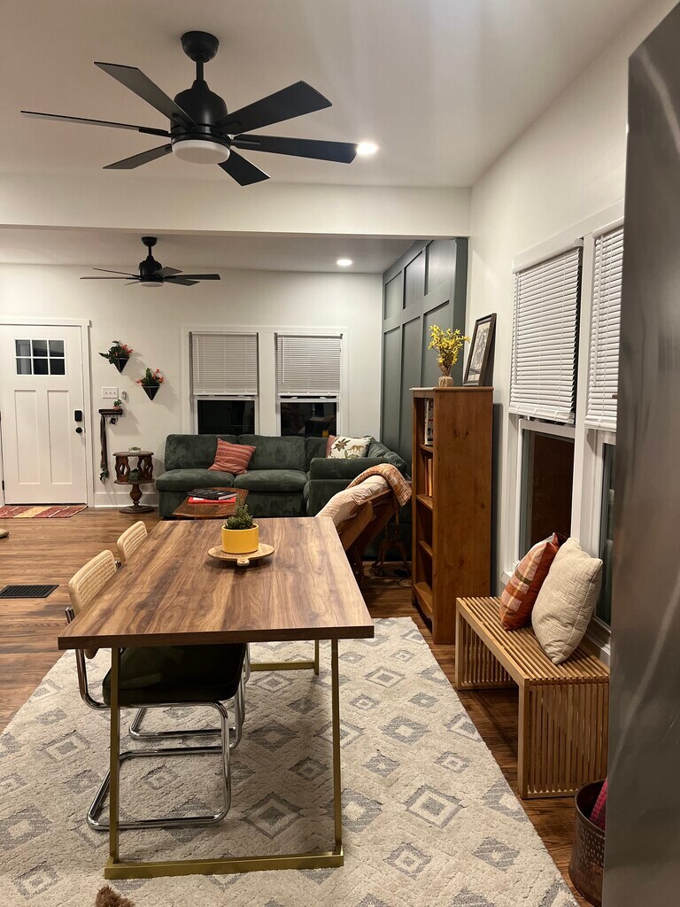 Relájese en nuestro espacio tranquilo y elegante. Disfrute del patio delantero y de dos dormitorios (cuatro personas) + una oficina (con futón) + colchón de aire (dos más) + cuna, a quién puede acudir. Pasee en bicicleta (o Uber) hasta el distrito de la cervecería y camine hasta el café desde este vecindario residencial. Puede pasar un fin de semana en las montañas ahumadas (o los bosques nacionales circundantes) o en el agua. Internet de fibra y escritorio de pie, además de una silla de oficina.
