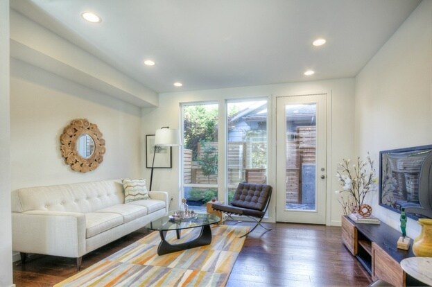 Amazing 3 bedroom, 2 bathroom house in Seattle - East Lake. The Denizen project offers modern architectural style in a park-like setting. Hugged by beautiful tree lined streets, these homes offer three bedrooms on the upper floors, all with incredible natural light. Views from your roof top deck will amaze and impress. Quartz counters, glass tiles, and chrome hardware give a clean and complete feel. Floating stairs, hardwood Floors, Radiant in-floor heat, tankless hot water, double wall construction. Amenities included: balcony, central heat, deck, dishwasher, hardwood floors, stainless steel appliance, updated kitchen, updated bathroom, washer dryer, yard, and infloor heating system. No Utilities included. Is pet friendly. Date Available: Nov 1st 2025. $4,350/month rent.