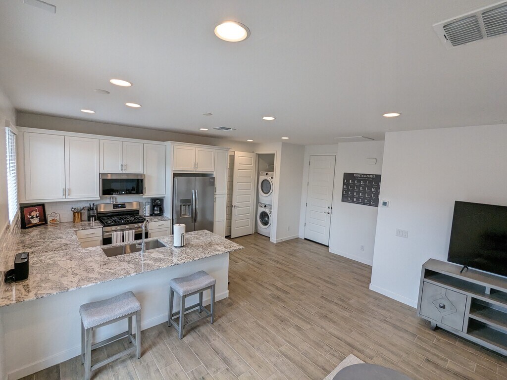 ¡A ESTRENAR! 1 dormitorio/1 baño, apartamento recientemente amueblado. El apartamento cuenta con acceso a Internet de alta velocidad, cama Queen, vestidor, nueva unidad de aire acondicionado, cortinas opacas en el dormitorio, lavadora/secadora grande, cocina completa con electrodomésticos, lavaplatos y horno de microondas con freidora de aire. El apartamento viene con la campana de la puerta de anillo colocada. Hay un estacionamiento cubierto dentro del garaje disponible por $100 por mes. Se permiten animales. Tarifa no reembolsable para animales: $250 USD. Precios totalmente amueblados por 1700 USD/mes para un arrendamiento de 1 año. Solicite opciones de plazo de arrendamiento diferentes y no amuebladas.