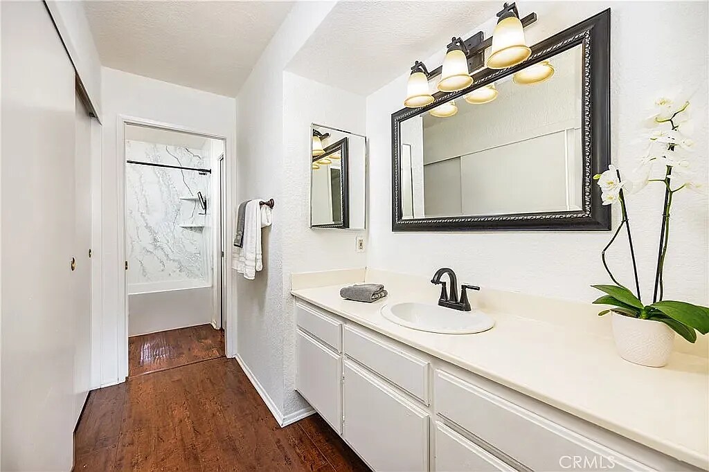 Corner Unit Single-Level Condo that has been beautifully maintained a perfect blend of comfort, convenience, and California charm! Step inside and experience an inviting open layout highlighted by stylish laminate flooring and an abundance of natural light that flows throughout the home. The spacious living room offers the ideal space to relax or entertain, featuring a charming brick-surround fireplace complete with a classic mantle perfect for cozy evenings or displaying your favorite decor. Adjacent to the living area, the dining space is designed for gatherings both large and small. It includes a versatile bar-top seating area, ideal for casual meals or mingling with guests while cooking. The kitchen is both functional and welcoming, offering durable tile countertops, ample cabinet storage, and a layout that encourages creativity for any home chef. Continue down the hallway to find a dedicated laundry area with extra storage a rare and convenient feature in condo living. The generously sized primary bedroom offers a peaceful retreat, complemented by a beautifully remodeled bathroom that exudes modern elegance. Enjoy the best of outdoor living with a spacious front patio perfect for basking in the Southern California sunshine, hosting summer barbecues, or simply unwinding at the end of the day. Additional features include central air conditioning, recessed lighting in the kitchen, a designated carport space, and in-unit laundry for added ease. As part of a well-maintained community, residents also enjoy access to resort-style amenities including a sparkling swimming pool and rejuvenating spa perfect for relaxing on warm afternoons. Located in a prime area of Orange County, this home offers unbeatable convenience with proximity to top-rated schools, shopping centers, dining options, parks, and major freeways making commuting a breeze and weekend adventures effortless. Don't miss your chance to own this exceptional home that truly has it all.