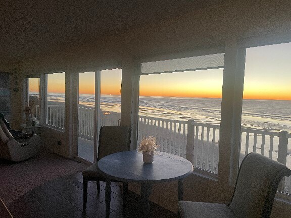This 2-bedroom, 1-bathroom smoke/pet free property, 1100 square feet of exclusive living space. The furnished living room is spacious, with a gas stone fireplace, providing a comfortable area for relaxation, offering unparalleled 180-degree ocean views and a private balcony. The master bedroom features two full closet spaces and natural light, and fully adjustable queen bed. The second bedroom has a full-size bed with a view of Devil's Lake. The bathroom includes solid surface countertops, double sinks, and shower/tub combination. The unit comes equipped with a washer and dryer for added convenience. The open kitchen is fully furnished with cookware, dishes, and utensils. The exterior is well-maintained, with close in beach access and nearby dining, amenities. This property is ideal for an individual or couple seeking a furnished living space with essential close-in amenities.
