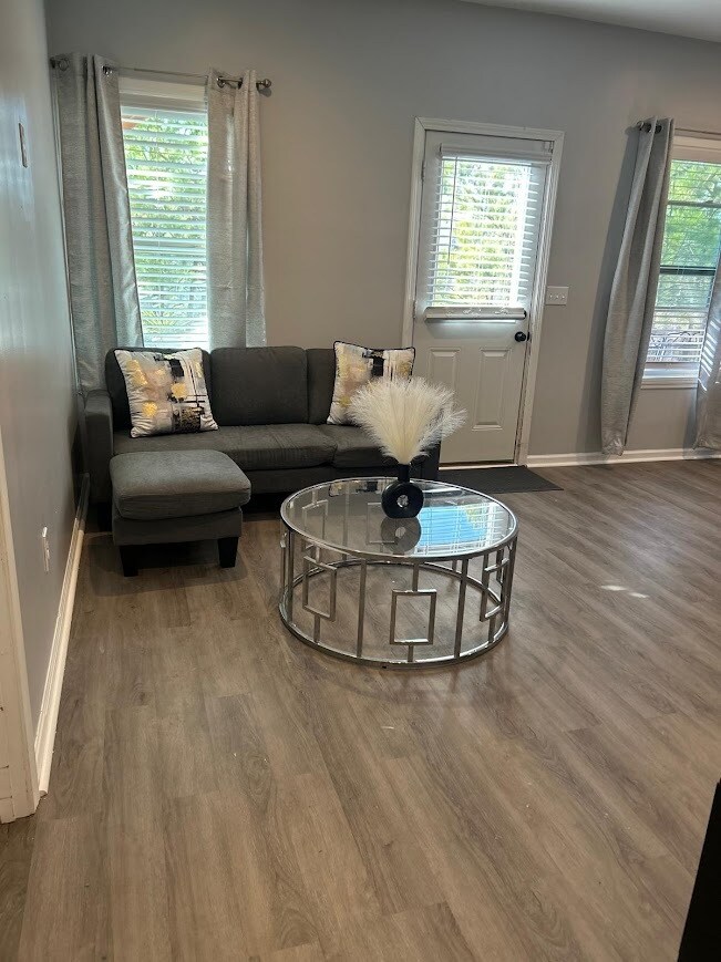 This modern, fully furnished 1-bedroom garden apartment with a bonus room is located in a newer subdivision off Highway 138 in Conyers, Georgia. Available March 14, 2026 for $1,400 per month, this 1,100-square-foot private suite offers all-inclusive living with every utility covered, including water, gas, electricity, and high-speed internet. The unit has been fully renovated and designed with comfort and style in mind, providing a bright, open layout and contemporary finishes throughout. The living area is warm and inviting, furnished with modern décor and arranged to maximize both space and natural flow. The master bedroom serves as a spacious retreat and includes a large walk-in closet with ample storage for clothing, seasonal items, and other belongings. In addition to the main bedroom, the apartment offers a bonus flex room that can serve as an office, guest room, or play area. While this flex room does not have a window or closet, it is a versatile space that can be tailored to your needs. The kitchen and living area feature an open-concept layout with plenty of storage and updated finishes, creating a comfortable and functional environment for everyday living and hosting guests. The bathroom has been tastefully remodeled and includes a sleek walk-in shower and modern fixtures. Outdoor living is another highlight, with a screened-in porch ideal for morning coffee or quiet evenings, as well as a separate private patio dedicated exclusively to the tenant. Convenience and privacy are further enhanced with a private entrance and a designated driveway parking space. The unit is pet-friendly upon discussion and is strictly non-smoking throughout the property. A security deposit is required. Located in a quiet subdivision, the apartment is only ten minutes from the shops and restaurants along Dogwood Drive, and just minutes from grocery stores, pharmacies, and daily conveniences. Parks, recreation options, and access to I-20 are all a short drive away, making this home an excellent option for anyone seeking a peaceful, move-in-ready living space in a well-connected area.