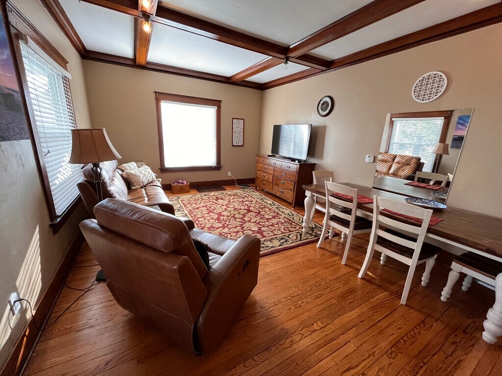 CORPORATIVA COMPLETAMENTE MUEBLES, ARRENDAMIENTO FLEXIBLE, Maravilloso nivel principal con garaje pequeño, $225. paga todos los servicios públicos, incluidos TV e Internet, gas, electricidad, agua y alcantarillado, y basura. No pagas nada más. ¡BELLEZASO trabajo en madera y suelos de madera, Y VENTANAS! Dormitorio CON UNA CAMA KING, baño, porche delantero y trasero, área tranquila en el centro de la ciudad junto al hermoso parque Vanderveer. Esta unidad tiene todo lo que necesita, incluido UN LAVADO GRATUITO. Aparcamiento callejero GRATIS en la parte trasera y en un pequeño garaje. No se permiten mascotas ni fumadores.