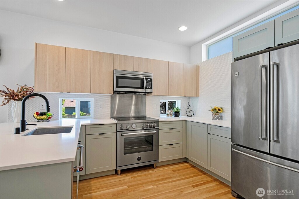 Beautiful 3 bedroom, 2.5 bathroom townhouse located in Ballard, WA (98107). Located near Adams Elementary School and Ballard Community Center (basketball courts, etc.) with extra security nearby. Very new construction (built in 2023) and first time rental. Prime location for commuting (4-min walk to Line 40 bus stop and Amazon shuttle stop; less than 20 min drive to downtown/SLU), top-rated schools (9/8/10), and convenient grocery/restaurants nearby. Dedicated off-street parking space. Split A/C and heater in each room. Floor heating in bathrooms. Expansive view rooftop.