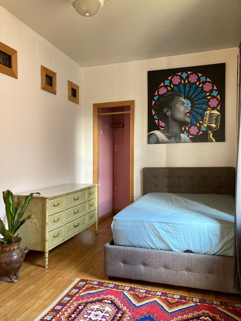 A beautiful loft style artist apartment. This is a spacious one of kind space fully designed by an artist. The space contains 3 bedrooms, 1 large bathroom, beautiful kitchen, and 1 den, a studio space, and living room. The apartment radiants during the day while each room has its own privacy. The place is fully furnished with new appliances, vintage furniture with a modern aesthetic. A new washer and dryer, small workout area, and yard are also available.
