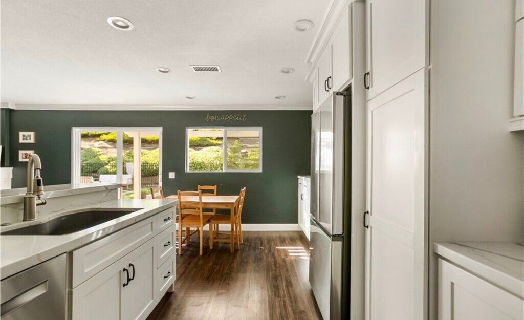 Nestled on a peaceful cul-de-sac in the highly desirable community of Mission Viejo, this beautifully appointed two-story home offers approximately 2,573 square feet of thoughtfully designed living space with 4 bedrooms and 3 bathrooms. The open-concept floorplan creates a seamless flow ideal for both everyday living and entertaining. The upgraded kitchen is the heart of the home, featuring quartz countertops, shaker-style cabinetry, stainless steel appliances, and a professional-style 6-burner stove. The kitchen opens directly to the cozy family room, where a warm fireplace creates an inviting space for gatherings and relaxation. Upstairs, a spacious bonus room offers flexible living space perfect for a media room, playroom, or home office. Step outside to a private backyard retreat designed for enjoyment year-round. The beautiful pool is complemented by low-maintenance artificial turf, a built-in fire pit, and a charming outdoor seating area perfect for entertaining or unwinding in the peaceful, upscale surroundings. Additional highlights include solar, generous living spaces, and access to the many recreational amenities and outdoor opportunities that make Mission Viejo such a sought-after place to live.