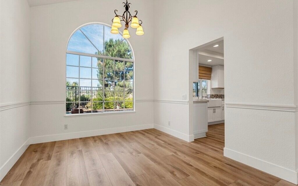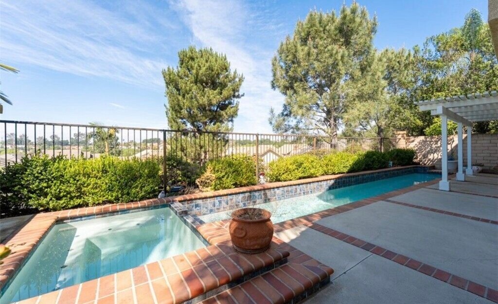 Welcome to this beautiful pool/spa home with panoramic views in the highly desirable community of south Mission Viejo! Now offering 4BRs, this home also offers an oversized 3 Car Garage & is walking distance to award winning Bathgate Elementary School. Step past the double door entry to a light filled interior showcasing soaring cathedral ceilings, a dramatic circular staircase with newly installed wrought iron detailing, along with formal living and dining spaces. The home has been thoughtfully updated with new luxury vinyl plank flooring throughout the downstairs and staircase, creating a modern and cohesive feel. The upgraded gourmet kitchen features quartz countertops, mosaic backsplash, top-of-the-line cabinetry, stainless steel appliances, and a spacious walk-in pantry. The kitchen opens seamlessly to the inviting family room with a beautifully remodeled fireplace finished in custom stone, and offers direct access to the backyard. Enjoy Southern California living at its finest in the private backyard with a sparkling pool, spa w/waterfall, and sweeping sunset views. Downstairs also includes a convenient interior laundry room and an updated powder room. Upstairs, the primary suite enjoys panoramic views, a recently remodeled bathroom with dual sinks, a separate shower, soaking tub, and dual walk-in closets. Three additional spacious bedrooms feature mirrored closet doors & ceiling fans. They share a remodeled bathroom with dual sinks and a shower/tub combination. Additional design features include extensive use of wood shutters, recessed lighting, neutral paint, dual paned windows/doors & more. Located in a sought-after neighborhood with award-winning schools, parks, shopping, dining, and easy freeway access. Homeowners also enjoy membership to Lake Mission Viejo, offering amenities such as boating, swimming, fishing, concerts, and community events. Don't miss this incredible opportunity. This home truly has it all!