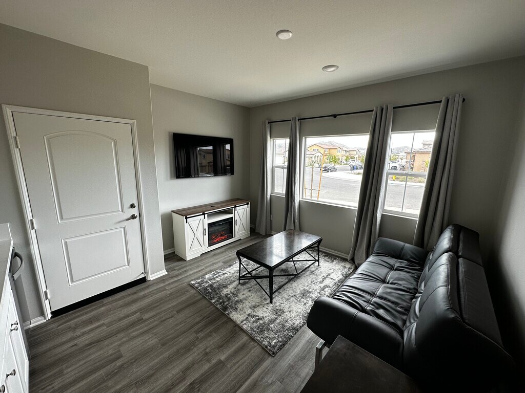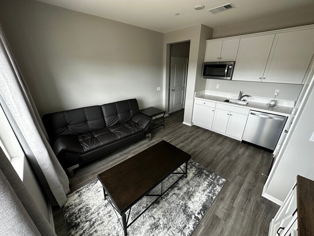 SUITE CON MUEBLES PARA ALQUILAR EN LA COMUNIDAD "SAGEWOOD" DE MENIFEE ¡Descubra su hogar completamente amueblado en la deseable comunidad "Sagewood" de Menifee! Esta nueva suite ofrece entrada privada, estacionamiento gratuito en la calle y una ubicación privilegiada cerca de la autopista 215, Winco, restaurantes y muchas empresas locales. En el interior, encontrará una sala de estar cuidadosamente diseñada con una cómoda cama Queen y un versátil sofá/futón. Disfrute de la comodidad de los tratamientos con ventanas para mayor privacidad y ambiente. La cocina pequeña, bien equipada, incluye electrodomésticos modernos y se ofrece un juego de lavadora y secadora privado. La sala de estar incluye una chimenea eléctrica, un futón de cuero y un televisor de 55 pulgadas. Salga a su propio patio privado cercado accesible desde el dormitorio, creando un tranquilo refugio al aire libre. Se incluyen Wi-Fi y todas las utilidades. Las mascotas pequeñas son bienvenidas con un depósito para mascotas. No se permite fumar. Disfrute de una vida sin preocupaciones en esta elegante suite amueblada. ¡Contáctenos hoy mismo para asegurar su nueva casa en la comunidad de Menifee's "Sagewood"!