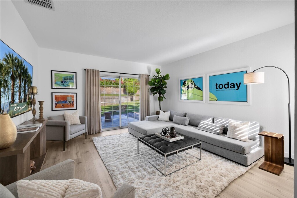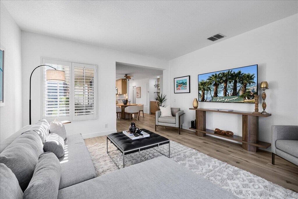 Newly renovated 2BR/2BA bungalow in central Palm Springs, located in the desirable Mesquite Country Club. Enjoy true resort living with multiple pools, spas, tennis & pickleball, all surrounded by the scenic Prescott Preserve. This light-filled home features stylish updates and a private patio perfect for relaxing. Ideally located near downtown, shopping, dining, and hiking. A perfect Palm Springs getaway to unwind and enjoy the desert lifestyle.