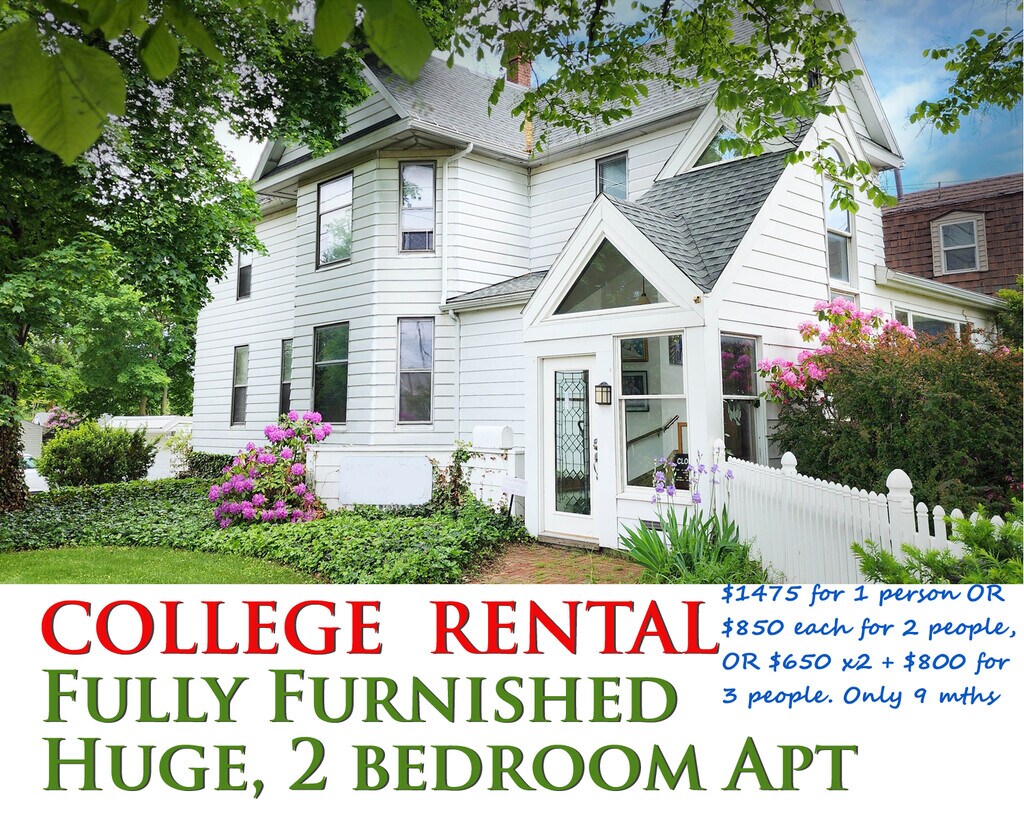 2023-24 Student & Alquileres a corto plazo - Cooper Rentals 2706 Buffalo Road Erie, PA, 16510 ENORMES, COMPLETAMENTE AMUEBLADO APARTAMENTO, 1250 ft² 2 habitaciones (1 grande con armarios c/múltiples), amplio baño, sala de estar grande, comedor/estudio, cocina comedor, vestíbulo, y mucho espacio de almacenaje. Entrada sin llave. Lavandería en el edificio. El alquiler incluye TODOS los servicios públicos (gas, electricidad, agua/alcantarillado/recolección de residuos, & Wi-Fi a Internet de alta velocidad (Listo para televisión por cable)). Cocina completamente amueblada, mesas, sillas, sofás, camas, vestidores, escritorios, lámparas, cortinas, una decoración de las paredes. Entrada para auto & patio de hormigón. Garaje estándar disponibles*. Iluminación de seguridad de patio con sombra. Ubicado en una zona tranquila, pero cerca de la comida & lugares de entretenimiento, parada de autobús. A menos de 3 millas de Behrend, 1,2 millas hacia Bayfront Hwy., 3,5 millas de las universidades Mercyhurst, y 4,5 millas de Gannon. de 1 habitación & muy grande puedes alojar 3rd inquilino mensual para estudiantes: 3 personas ($563 x2 –lg HAB + $710-sm HAB) = $1836 ($200 de descuento. Si firma el contrato de arrendamiento por 4/15/23) 2 personas ($750-lg HAB + $710-sm HAB) = $1460 ($150 de descuento. Si firma el contrato de arrendamiento por 4/15/23) 1 persona $1.250 ($100 de descuento. Si firma el contrato de arrendamiento por 4/15/23) Sec depósito $2.100 Pague por el semestre. Plazo de arrendamiento es de solo 9 meses, no de 10-12 * Se agregará una cargo adicional Las comodidades: El alquiler incluye el uso de todo lo que ve en las fotos y mucho más. Entrada para auto de hormigón, amplio patio a la sombra con patio de hormigón, entrada sin llave, y fango habitación. Cocina completamente equipada con platos, tazones, tazas, vasos, cubiertos, mezclar & que sirve de los recipientes para comida, olla, sartenes, utensilios de cocina, horno de microondas, tostadora, horno, los titulares de la olla, escoba, recogedor, piso aspiradora, alfombras aspiradora, cocina de basura, recolección de residuos puedes, cestos de residuos, mesa de cocina & sillas, arte de pared, reloj alarma, mini persianas, ventilador de techo. Amplia sala de estar incluye un sofá grande & un sofá de dos plazas, una lámpara de pie, una mesa auxiliar & lámpara, sofá, mesa, mesa de café, alfombra de área, alfombras de pared a pared, arte de pared, minipersianas y ventilador de techo. Comedor y sala de estudio w/dining mesa & 4 sillas, una obra de arte en la pared. Alquiler de verano mensuales (3 meses) 1 persona: $975 2 personas - 1.450