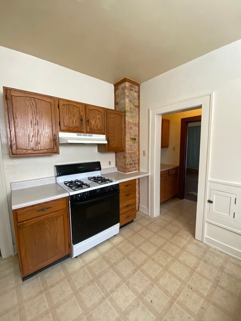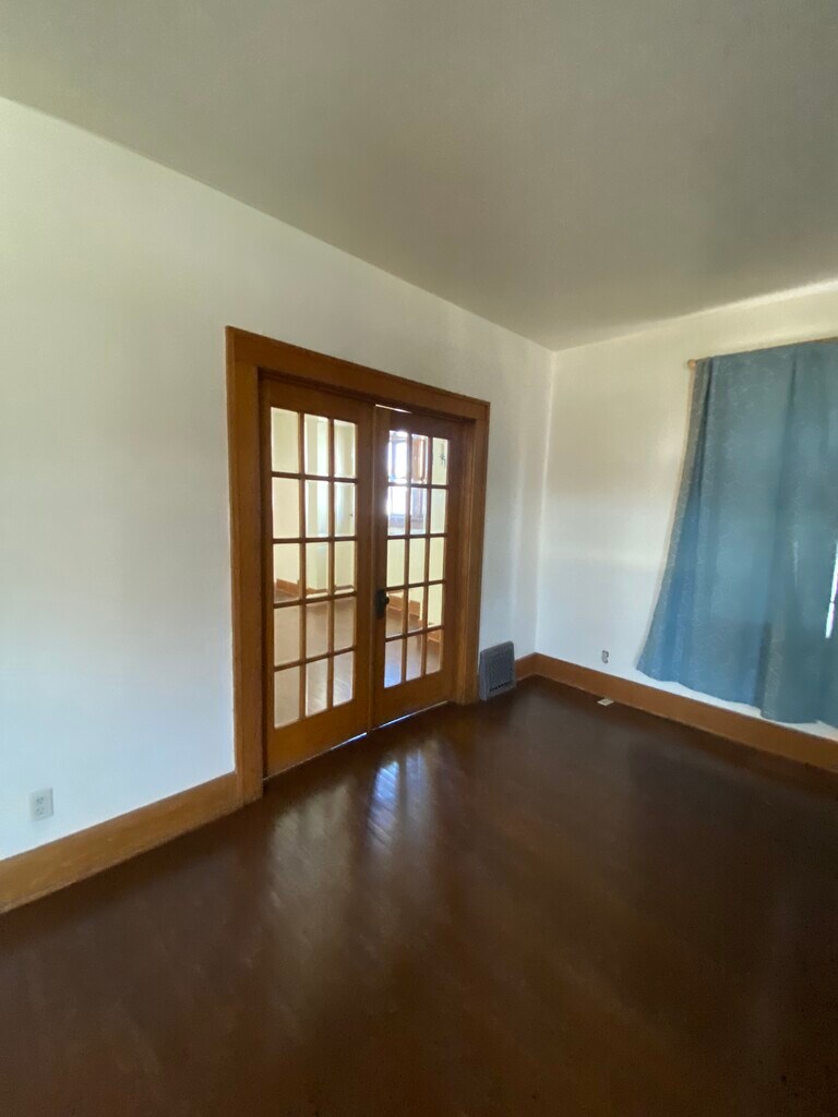 All wood floors, French doors between living room and dining room. Large kitchen with butler’s pantry. Three bedrooms with large closets Laundry shoot in bathroom and kitchen too Garage 12x22