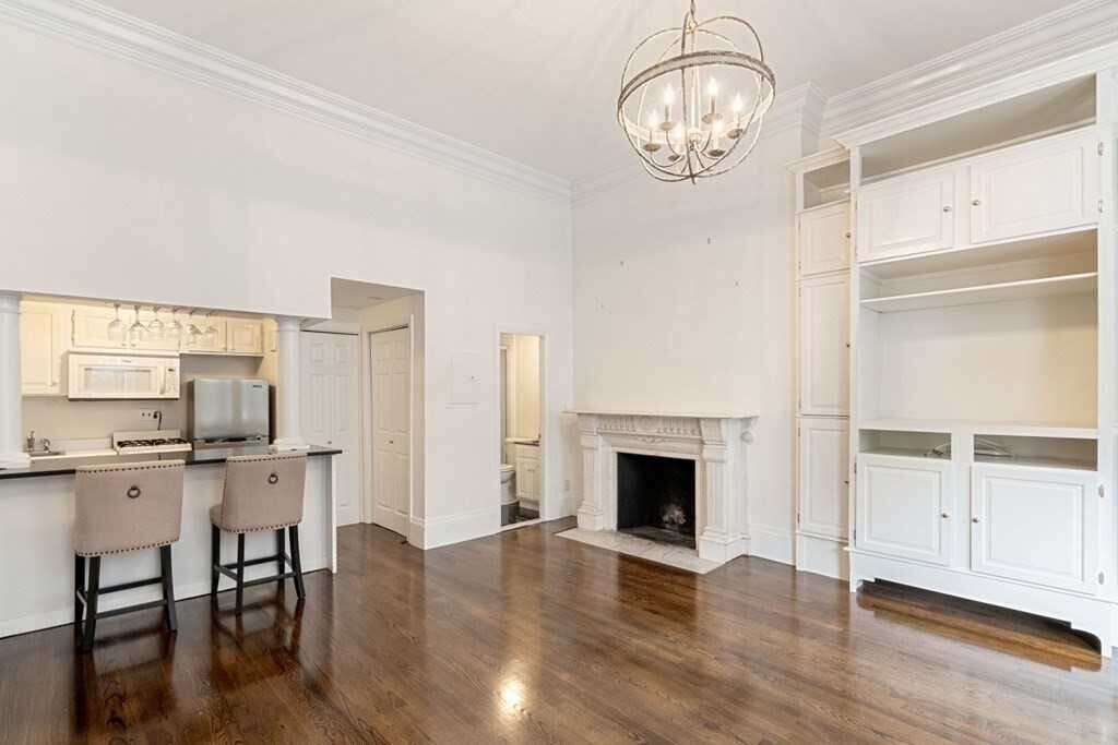 Classic brownstone in the heart of Back Bay. First floor front facing unit. This spacious, bright, studio features gleaming hardwood floors, bay window, decorative marble fireplace and 11'ceilings. Kitchen offers granite counters with breakfast bar. Updated bathroom. Great closet space and built in wall cabinet offers extra storage. Unit includes heat, hot water and in-unit laundry. Short stroll to the Public Garden/ Boston Commons, shopping on Newbury Street, MGH , and public transportation,