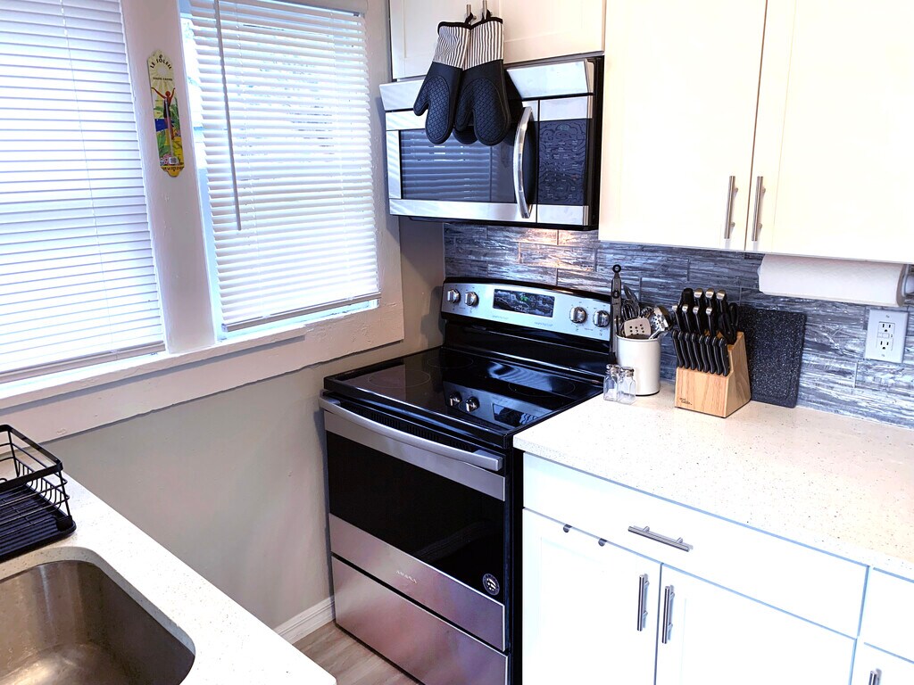 *Cant beat St Pete* Welcome to your cute home away from home in sunny, cheerful St. Petersburg. Relax in this private, move-in ready updated studio with free, lighted on-site parking. Set in a quiet, safe residential neighborhood, this fully equipped/furnished studio is just 2 miles from downtown, a mile from Trader Joe's + 5 miles from a beach. Explore local galleries, breweries, restaurants and live music venues. We love pets but not at this property. Your hosts are here to help. No smoking!