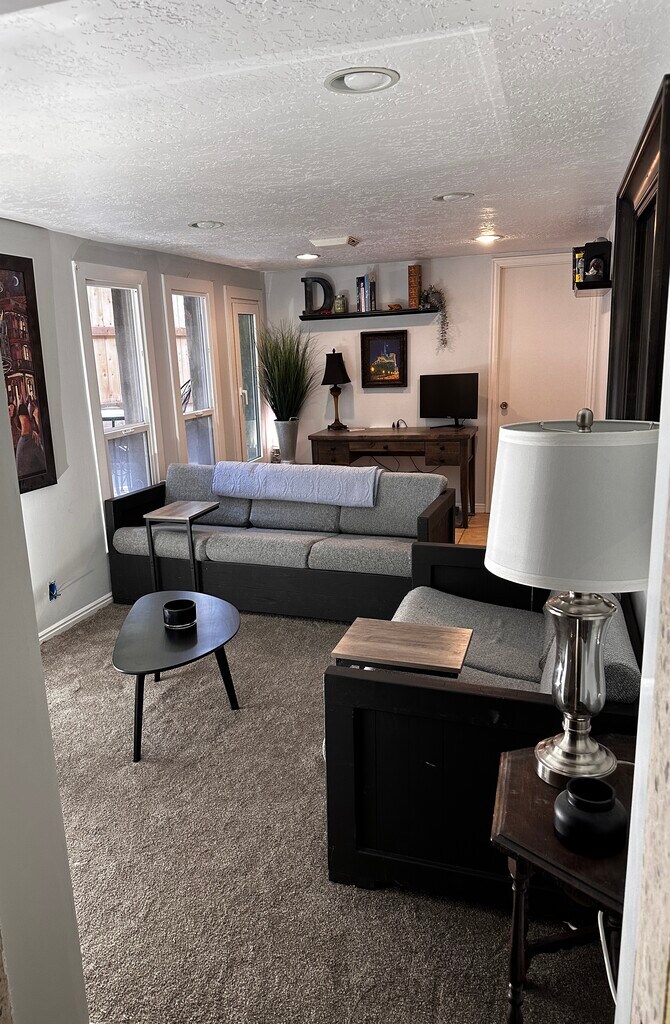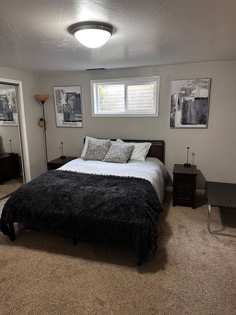 This private apartment has its own entrance and its own patio and can be your humble home. It is a 1 bed/1 bath with a galley kitchen, equipped with in-unit laundry. There are three (3) spacious closets. The living room has a cozy gas fireplace. The bedroom fits a king size bed. All utilities are included: Elec/Gas/Water/Internet/Streaming Svs in existence. *** Furnished apartment is negotiable. Check it out!