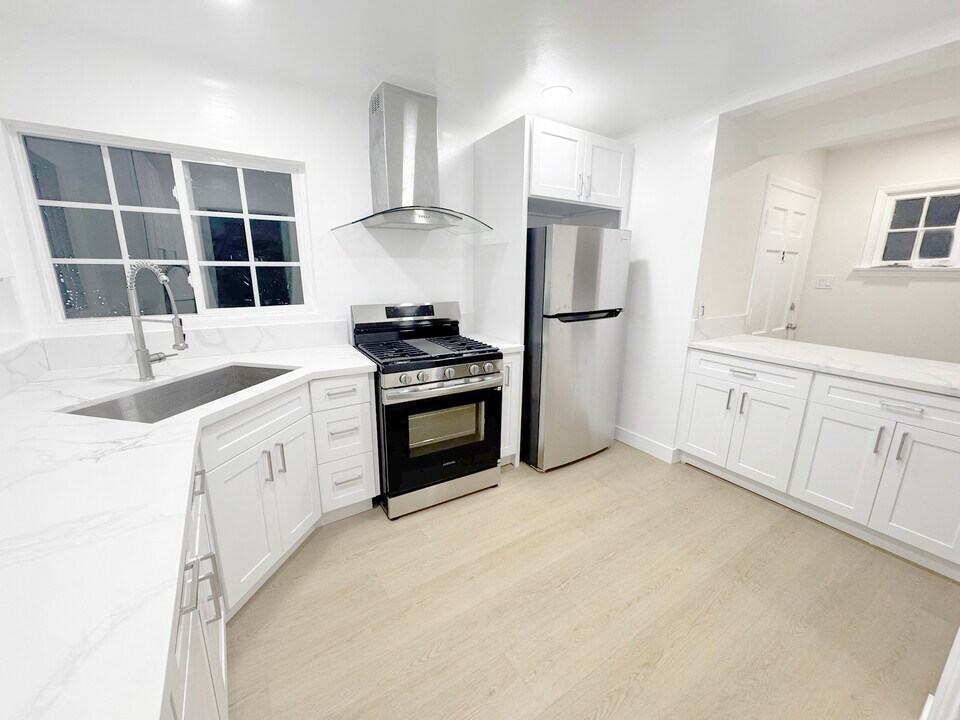 Beautifully remodeled, move-in ready rental featuring refined finishes and a cozy fireplace. Front unit of a duplex with separate entrance that offers brand-new cabinetry, modern appliances, updated flooring, and recessed lighting. Enjoy year-round comfort with efficient split-type A/C and heating. Ideally located near major freeways, shopping, dining, and everyday essentials for easy commuting and convenience. Relax on the serene front porch. Meticulously maintained for tenants seeking a high-quality living experience. Shared washer and dryer available on premises. Gardener paid. Minimum Lease Term is 12 months. Utilities are shared. No smoking. No pets.