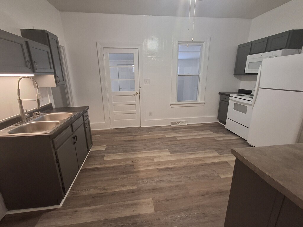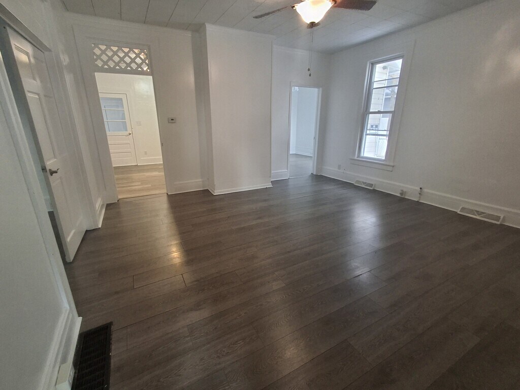 This lovely 2/3 bedroom, 1 bathroom apartment is located on the ground floor of a 2 unit apartment building. You will enjoy a large front porch, fenced in backyard, off street parking, and large laundry/mud room. It also features high ceilings and ceiling fans DETAILS: * 1 Year lease required * Deposit and 1st month rent due before move in. * $75 monthly water fee * Tenant pays electric and gas * Owner pays Trash pickup * NO SMOKING. Outside only. * Pet fee is $95/mo. 1 pet maximum. $200 pet deposit ** Sq. footage is approximate Application requirements: * Past 3 months proof of employment (W2, pay stubs, copies of SSI stubs, etc.) * We do work with folks with felonies on a case-by-case basis. * Background and credit check for EACH adult * Last 3 years of housing history * Last 3 years of employment history * $35 application fee for each adult 18+