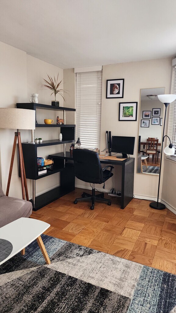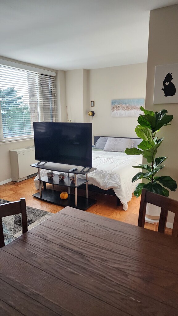 Available from early February, this 464 sq ft studio apartment offers a bright and inviting living space. Located on Wisconsin Ave., in the block between Fulton and Garfield, the studio is situated on a high floor, providing views of the Potomac River and the National Mall in the distance. The east-facing large windows ensure the apartment has natural light throughout the day while maintaining privacy. The apartment comes fully furnished and features a work area with a large desk, perfect for those working from home. The kitchen is well-equipped with a large fridge, a 5-burner gas stove, a spacious oven, and a full-sized dishwasher. Central heating and air conditioning ensure a comfortable climate year-round. All utilities (except for internet) are included in the monthly rent. The laundry room is conveniently located in the basement, and off-street parking is available around the building. The apartment is located in a building primarily comprised of owner-residents and does not operate as a rental building. The building is smoke-free and the unit is pet-free as well. For those who rely on public transportation, the 31/33 bus stop (servicing the Foggy Bottom - GWU Metro Station) is just around the corner, with a bus ride to Foggy Bottom Metro Station taking approximately 10-15 minutes. The Woodley Park/Tenleytown metro stations are about a 20-minute walk away. The apartment's prime location offers easy access to nearby amenities. Georgetown University is a 15-minute walk, and American University is similarly close. A variety of grocery stores, including Giant, Whole Foods, CVS, and several restaurants, are within a 7-minute walk. Trader Joe's, Safeway, and additional dining options are 10-14 minutes away. For those who enjoy outdoor activities, Glover Archbold Park, ideal for running, is nearby. The rent for this studio apartment is $1,950 per month (including all utilities). A one-month security deposit, and a background and credit check are required.