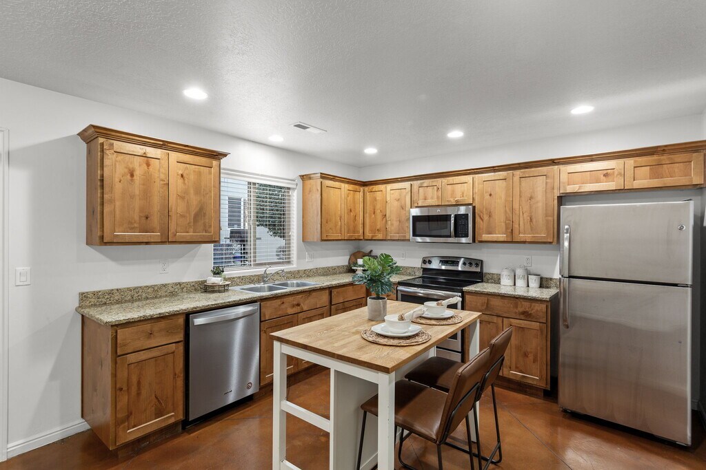 Flats at South Point 2801 E 450 N #324 | St. George, UT 84790 3 Bedrooms | 2.5 Bathrooms | 1,451 sq ft $1,850/month $2,000 security deposit Available Now Well-maintained and very clean townhome that is move-in ready. The home has been thoroughly prepared and updated and is ready for immediate occupancy. Home Features: Functional floor plan Concrete floors on the main level Carpet on stairs and hallway LVP flooring in upstairs bedrooms and bathrooms All bedrooms located upstairs Refrigerator and Washer/Dryer included Butcher block kitchen island with barstools Infowest Internet Included (through HOA paid by owner) Two parking Spaces - one covered, one uncovered Located New Community Playground Central Location - near Pine View High School, Costco Recent Updates & Maintenance: New washer and dryer installed New laundry room shelving Two new ceiling fans New shower heads and toilet seats New furnace filters & smoke detector batteries Touch up paint complete Professionally cleaned throughout Carpets professionally cleaned Windows professionally cleaned inside and out Interior and exterior pest treatment completed Additional Details: No smoking or vaping One pet may be considered on a case-by-case basis $50/month pet rent $500 additional pet deposit Tenant Requirements: Minimum 2 years of verifiable rental history Credit score of 620 or higher Good references required Background and credit check will be conducted Owner/Agent disclosure: Property owner is a licensed real estate agent.