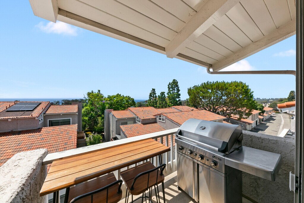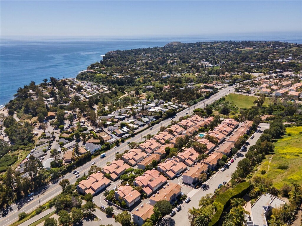 Positioned on the top row of the highly sought-after Malibu Villas, this end-unit townhome captures breathtaking ocean views from a peaceful, elevated vantage point. Located within a guard-gated community just across the street from Malibu's iconic beaches, this 2-bedroom plus a loft residence offers the perfect blend of comfort and coastal charm. Step inside to find an open, airy layout featuring vaulted ceilings, expansive windows, and hardwood floors. The living room is centered by a wood-burning fireplace, ideal for cozy Malibu evenings and relaxing entertainment. The gourmet kitchen features granite countertops, maple cabinetry, and stainless-steel appliances, including two ovens, a stovetop, dishwasher, and refrigerator. The primary suite offers a private retreat with an en-suite bathroom, walk-in closet, and private balcony. There is a second en-suite bedroom with access to an outdoor courtyard, plus a versatile loft area which can be used as a third bedroom, home office, or creative studio. The home is complete with an in-unit washer and dryer and a private two-car garage. Residents of Malibu Villas enjoy exclusive access to resort-style amenities, including a communal pool, spa, and clubhouse, all set among lush landscaping and just a moment's trip from sandy beaches, beautiful hiking trails, and local Malibu shops.