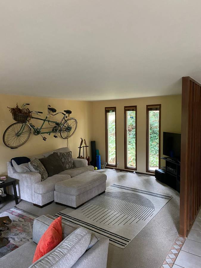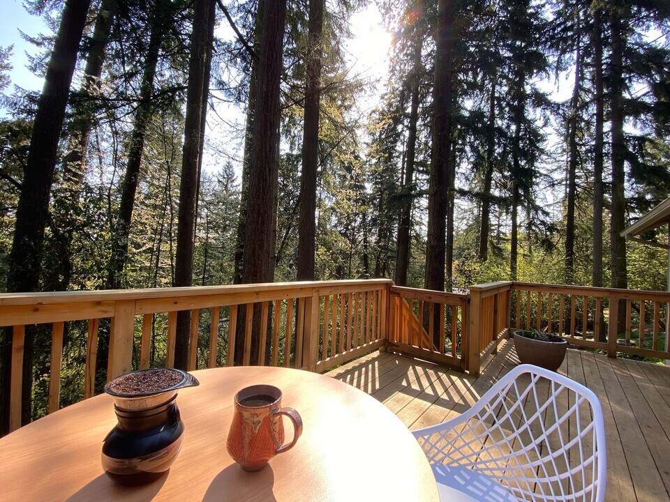 Renting out my private wooded home in the southwest hills. House will be unfurnished -- previous occupant furniture shown. HOA rules say up to 1 dog + 1 cat. No fenced yard. Security deposit is 1.5 month's rent. Reach out to apply. The good: -lovely deck and rock patio outdoor spaces -plum & cherry trees are poppin' in the spring, rhododendrons in the summer -local cement walking trails that are beautiful (but steep!) -newer kitchen and laundry machines -privately managed (by me), I try to keep things pretty easy -2 car garage The less than ideals: -driveway is steep and does not accommodate low-clearance vehicles -ceiling heat, but being in the hills and with bedrooms downstairs summer heat isn't bad w/o AC -primary bedroom is good sized, other two bedrooms are on the smaller side -I'd like to refinish the deck when the rain stops, so that will be an upcoming maintenance project