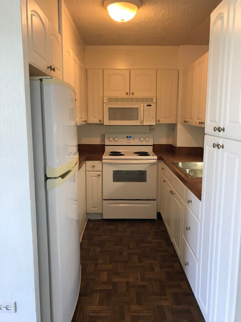 This 2-bedroom, 1-bathroom, 1-parking unit at 2845 Waialae Ave offers 600 square feet of living space. The living room features vinyl flooring and provides access to natural light, creating a comfortable area for relaxation. The kitchen is equipped with a refrigerator, oven, range, and microwave, making meal preparation convenient. The bathroom includes standard fixtures and is designed for functionality. Additional amenities include air conditioning, common laundry facilities, and access to a pool. The property is smoke-free and has an elevator for easy access.