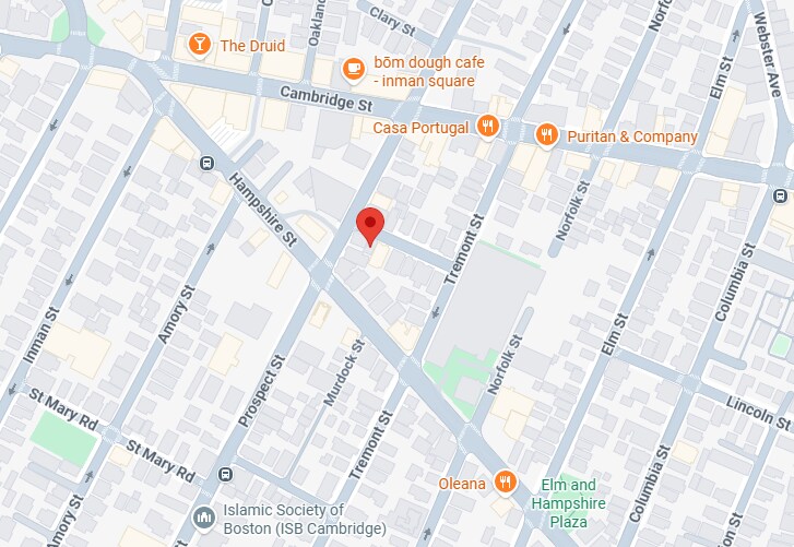 Está localizado en el barrio Inman Square, 290 Prospect St en el código postal 02139 de Cambridge, MA.
