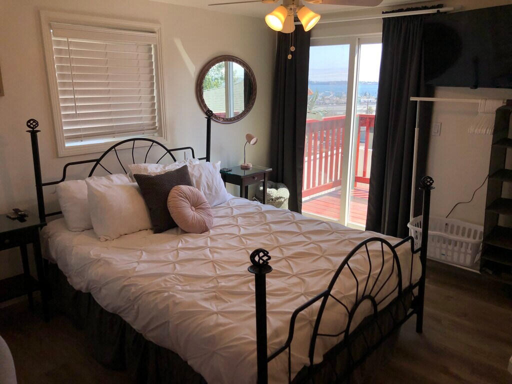 Downstairs unit with a postcard view of downtown San Diego, Coronado, Lindbergh Field, and even as far as Point Loma, Balboa Park, and Mission Bay. Located around the corner from Little Italy, downtown's historic Gas-lamp district, Balboa Park and Waterfront park. Seeking 4-6 month lease but prefer longer. ONLY $50 for all utilities including water, electric, trash, gas, internet, Netflix, and there is an accessible washer and dryer on the premisses! This BEAUTIFULLY FURNISHED, FULLY STOCKED, 390 sqft studio with a full bathroom and full kitchen was recently remodeled and has recently purchased appliances, paint, and flooring. Laundry is adjacent on-site. Beautiful common courtyard ideal for hanging out. OTHER SPECIFICS: - Comfortably sleeps 2 (queen bed). - FREE 1GB Wi-Fi and a comfortable work desk. - Large screen smart HDTV with Netflix available at no charge, or use TV to login into your own service provider. - Private deck with ocean view, and patio with chairs and table set for outdoor eating or simply enjoying the San Diego weather - Kitchen equipped with: Cookware, pots/pans, water and wine glasses, dishes and silverware, can opener, bottle opener, coffee maker, toaster, microwave, pantry. - 100% Non-Smoking (of any kind) condo and property. - Small dogs may be okay but may not stay at the property unattended. - Because of proximity to the airport, tenants should expect noise during the day. Did I mention the view? This opportunity won't last, call to schedule a viewing! Fully furnished! Seeking minimum 4-6 month rent but preferably longer, and rent negotiable for leases longer than 6 months. Only $50 for ALL utilities including water, electric, gas, trash, internet, Netflix, and laundry is on the premises.