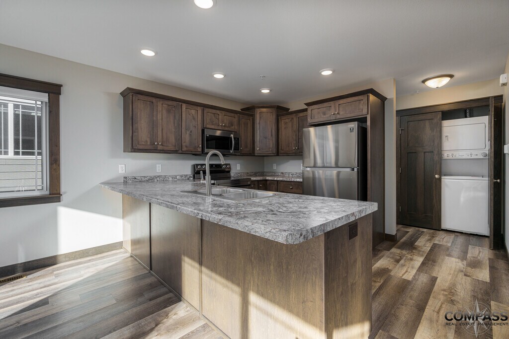 Conveniently located, this two-bedroom townhome consists of a modern feel with upscale stainless-steel appliances, a two-car garage, walk-in closets, and in-unit laundry. Each home features central heat and air conditioning with an open concept layout perfect for entertaining. To make it even more convenient for you, the rent price includes water, sewer, trash, recycling, lawn care, and snow removal! Applicants are required to complete a rental application and authorize a credit and background check. The online portal is available with AppFolio Property Management software for online payments, maintenance requests, and property communications. One month’s rent security deposit required. Visit compassmgt.cc/vacancies for more of our available apartments and apply today! In-person and virtual showings are available. APARTMENT APPLIANCES: • Full Size Electric Range • Refrigerator • Microwave • Dishwasher • Washer • Dryer • Central Heating and Cooling GENERAL APARTMENT AMENITIES: • Carpeted Bedrooms and Closets • Walk-In Closets • Open Concept Floor Plan • Storage • Large Windows • Tub/Shower • Private Two Car Garage • Private Apartment Entrance COMMUNITY AMENITIES: • Located on Local Bus Route • Close to Downtown & Campus • Outdoor Decks • Smoke Free • Pet Friendly - Cats and Dogs up to 70lbs