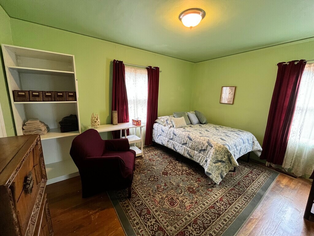 This is a spacious, comfortable and quiet first story of a home located on a corner so there is only one next door neighbor. Each bedroom is well-appointed, with 2 recently painted, a bed, desk, chair, tv/monitor and a closet. There is one recently renovated bathroom with shower only. The living room and dining room areas as set up for shared space. The kitchen is a good size with a new gas oven and refrigerator. There is also a former breakfast nook that can be used for a reading room or exercise. The washer and dryer are downstairs on the first level. This is also where you access the garage and backyard. This first story will be be accessible by the owner for maintenance and to meet landscapers once per month. . Neighborhood Overview Welcome to quiet, easy living for those who are looking for convenient commutes and a neighborly area instead of the hectic downtown area. Located in Maxwell Park, the immediate area is diverse and family-friendly . It is close to things to do, parks to explore, places to eat, and a short drive to downtown Oakland, San Francisco, or in the opposite direction, San Leandro, Castro Valley, and Pleasanton. This unit is only 2 blocks from the bus stop and makes it easy to get to any location in the Bay Area.