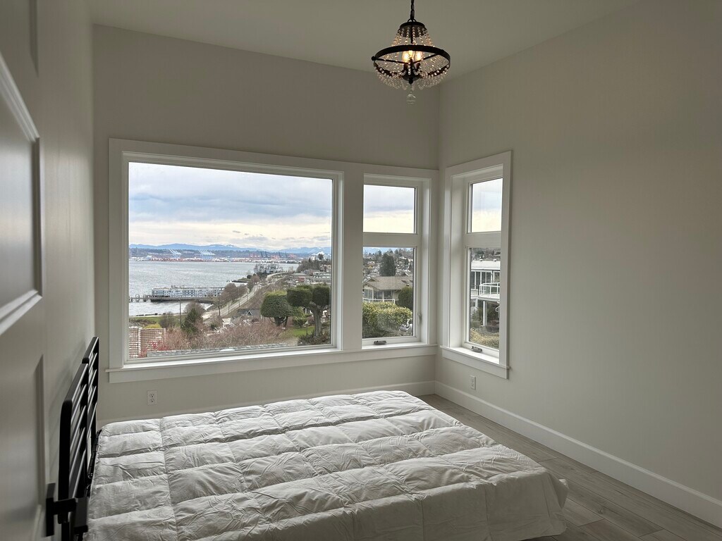 Newly constructed ADU with breathtaking views of Commencement Bay, Mt. Rainier & Port of Tacoma. Open concept where kitchen with Island flows into great room with leather sofa with electric reclining controls. Hi speed/separate/secure internet provided. Enjoy the close up views from your bedroom, kitchen & great room. Free parking on site. Beautiful hardscape & landscape surround the courtyard with sitting area & fireside table (propane).
