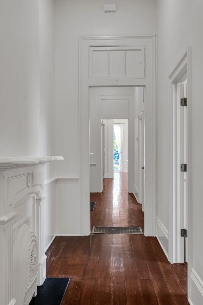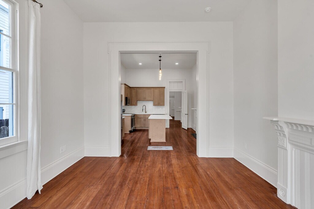 Be the first to live in this beautifully renovated historic home, ideally located in the vibrant Bywater! This meticulously restored 2-bedroom, 2-bath blends timeless architectural details with modern comfort. Original hardwood floors, soaring ceilings, fireplace mantels, and millwork have been thoughtfully preserved. The kitchen features Diano Pearl stone countertops, high-end stainless steel appliances, custom cabinetry, a pantry, and a large island with built-in seating—perfect for cooking and gathering. A wide hallway leads to the guest bath with double vanity, stone counters, and a walk-in shower. The private primary suite includes its own en suite bath, laundry in unit, and opens to a spacious rear deck—ideal for relaxing or entertaining. Includes a long private driveway, offering ample off-street parking.