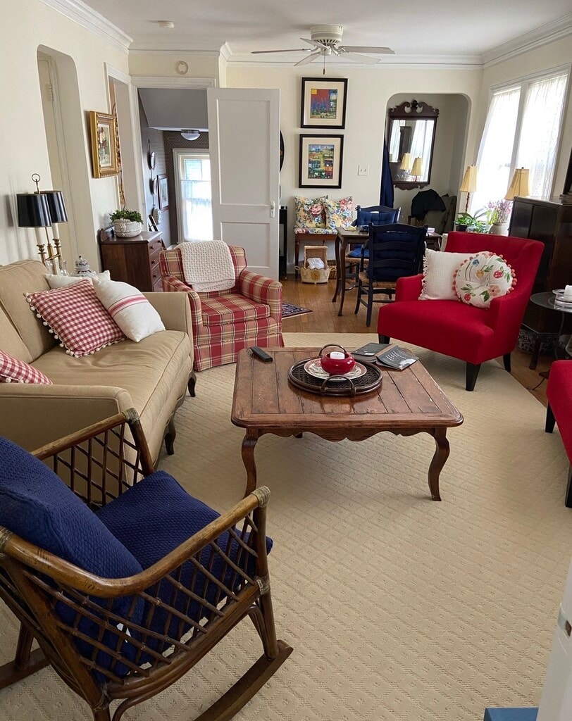¡Casa de COACH hermosa, soleada, silenciosa y única! Calle residencial cerca de escuelas y parques Mascotas OK, perros o gatos pequeños Suelos de madera Unidad de aire acondicionado D/W Microondas Lavandería y almacenamiento, primer piso ático de marco A, mucho espacio de almacenamiento y armario de cedro **Cubierto en el porche con banco oscilante, baldosas de terracota **Se requiere depósito de seguridad en el patio y jardín al aire libre